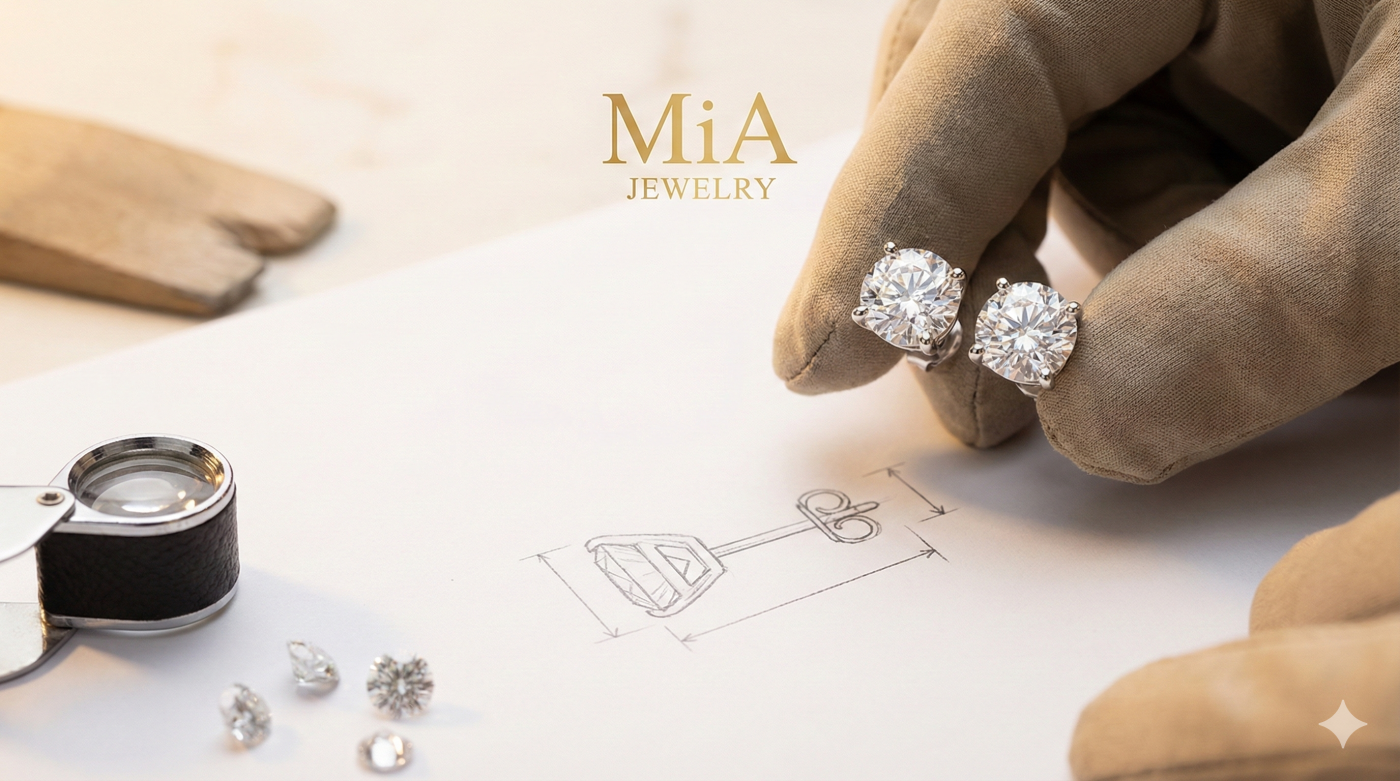 Dịch vụ bông tai kim cương thiết kế riêng tại MiA Jewelry mang đến cho khách hàng trải nghiệm cá nhân hóa toàn diện, nơi từng chi tiết được tạo ra để phù hợp phong cách, gương mặt và cá tính riêng. Mỗi thiết kế đều được chế tác thủ công, sử dụng kim cương tự nhiên nhập khẩu và tiêu chuẩn hoàn thiện cao cấp.
