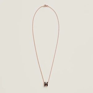 Dây Chuyền Hermes Mini Pop H Màu Đen Chế Tác Vàng Hồng 18K